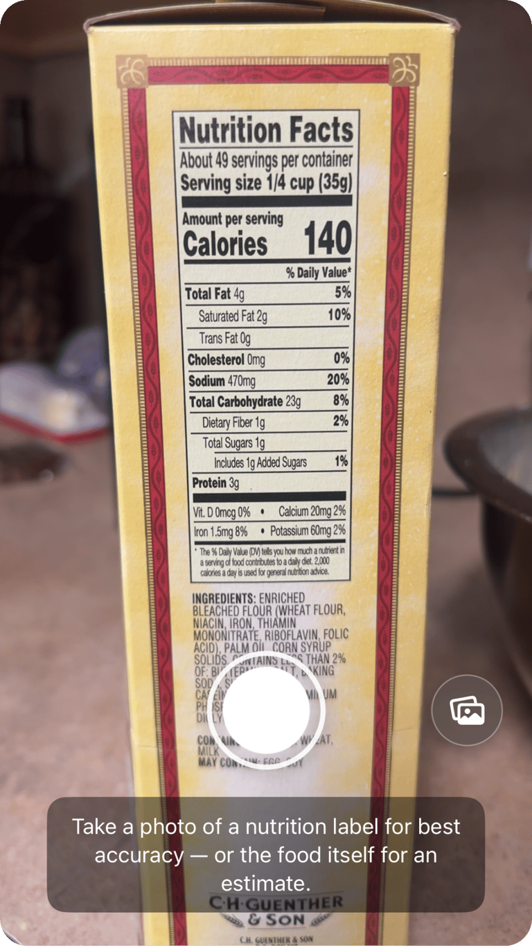 Scan barcodes or nutrition labels to log packaged foods instantly and accurately.