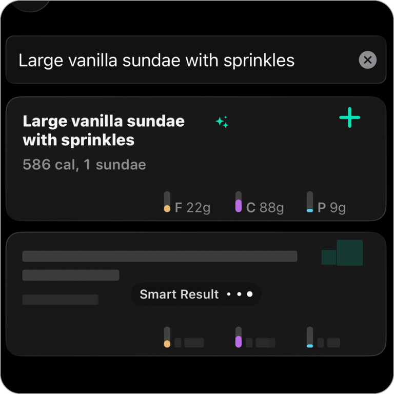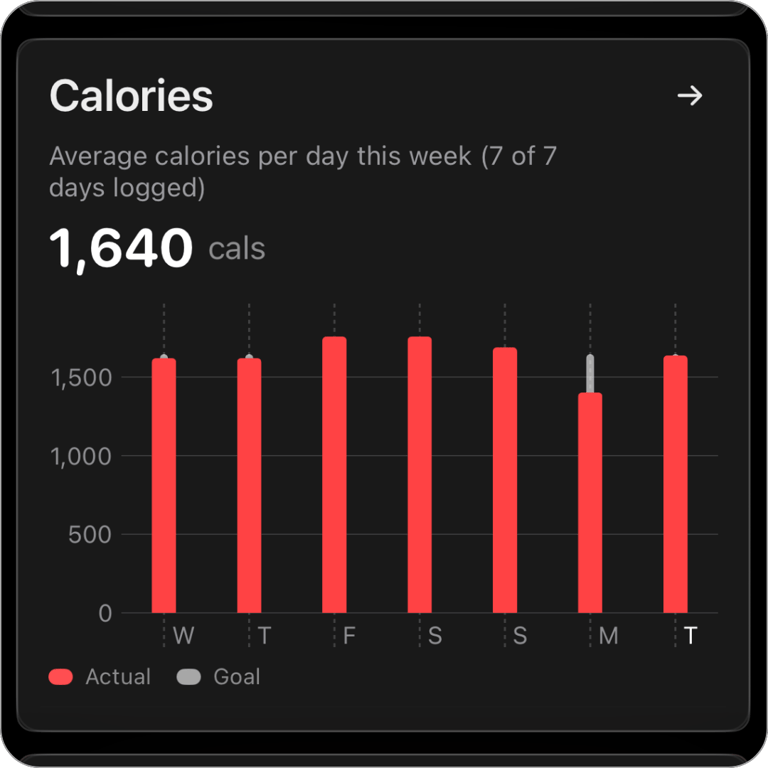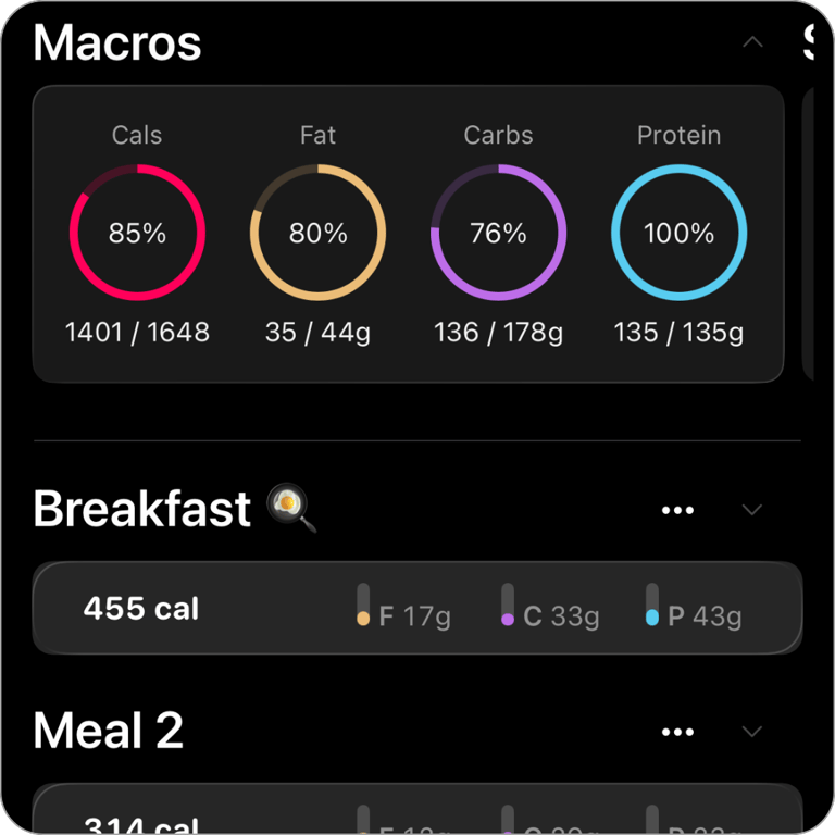 See your calories and macros in one place, updated in real time.